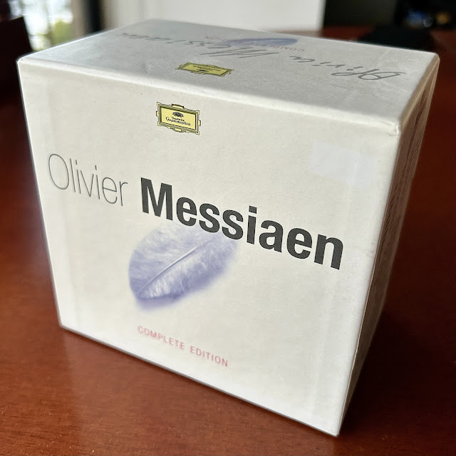 Luego terminé adquiriendo una caja de DG con todas las composiciones del francés: en esta caja la música para piano no es mayormente interpretada por Aimard, y con la comparación pude confirmar el inmenso pianista que es Aimard en ese repertorio. Increíble, porque en realidad el pianista de la caja no es cualquier pianista de segunda, se trata de nada menos que Roger Muraro, efectivamente muy reconocido en la música de Messiaen.